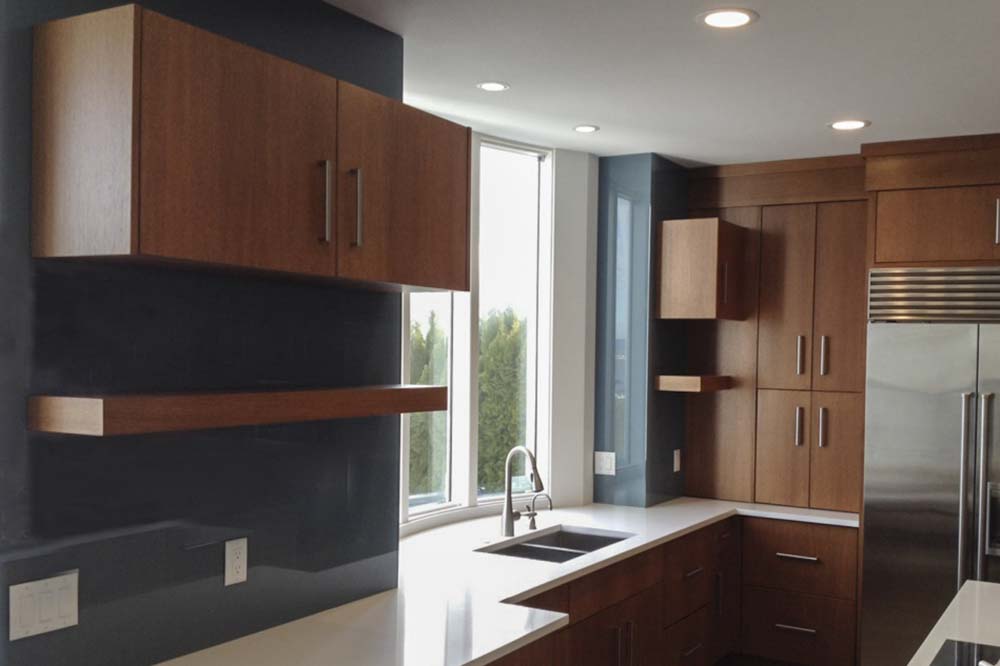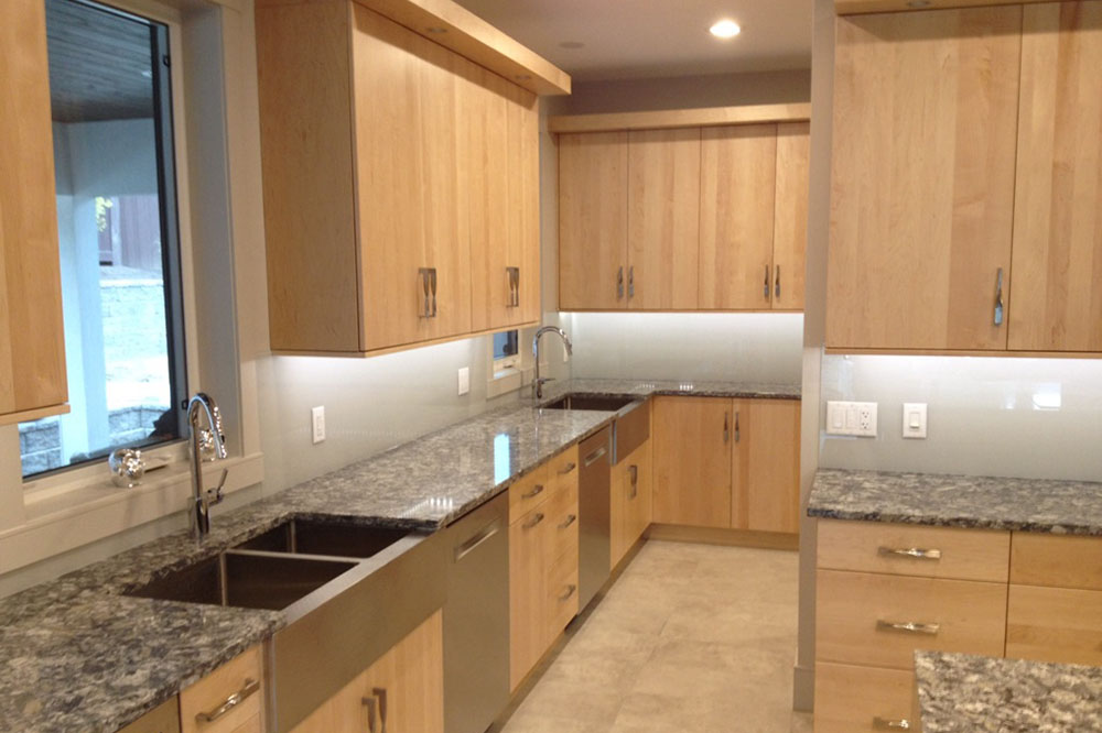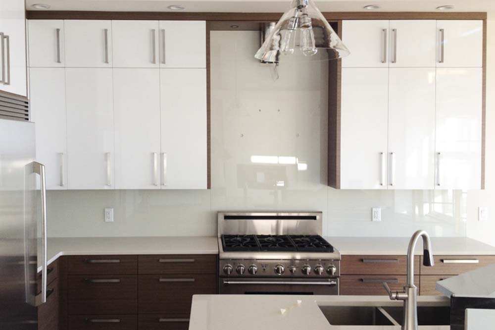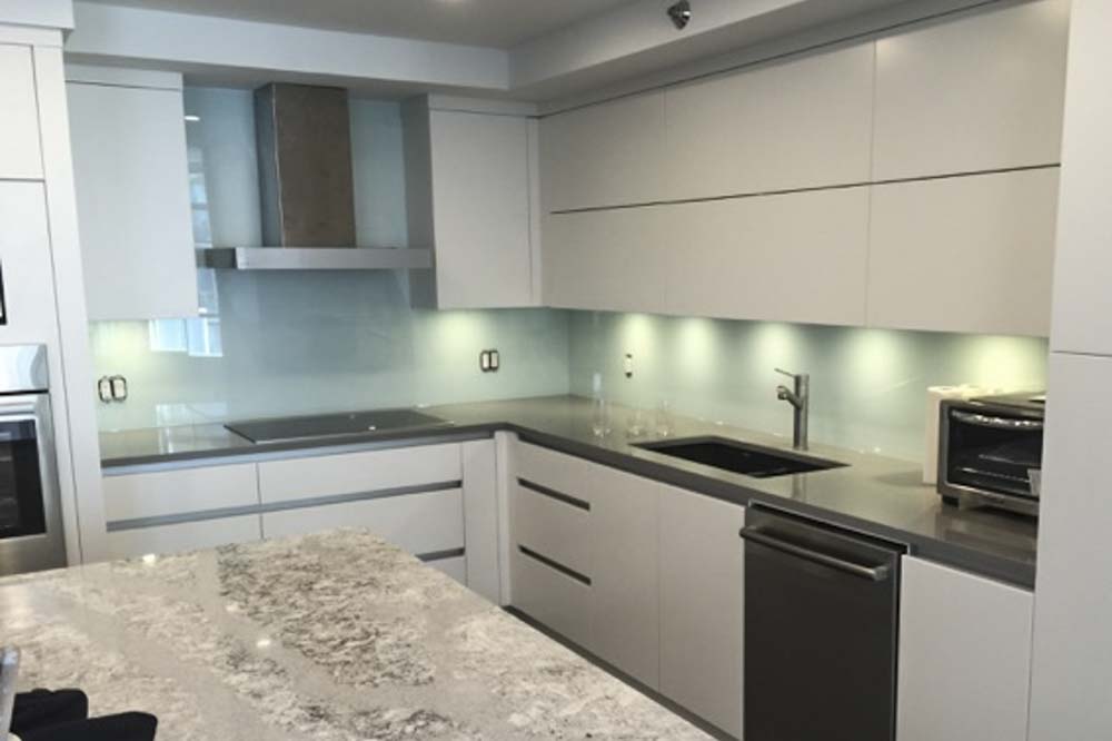 Holes, notches, plug cutouts, and tempered options for behind the stove are all added fabrication commonly used in a residential backsplash application. There are no grout lines, so your custom backsplash is easy to