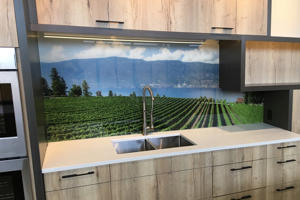 Virtually any colour is available; metallic paints, or digital images can also be incorporated. We can even add a magnetic interlayer to bring added functionality to your new backsplash.