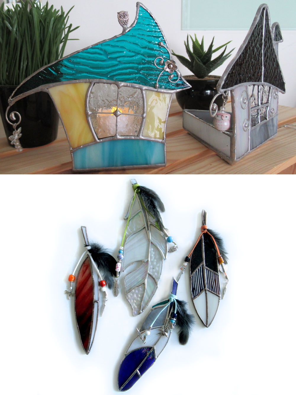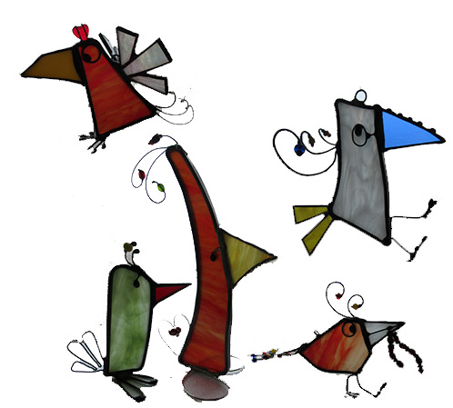 This is an introductory class on learning to create stained glass using the copper foil method. Learn how to cut and shape glass, foil neatly and solder. This is a class for all ages with a fun theme of birds. Different patterns