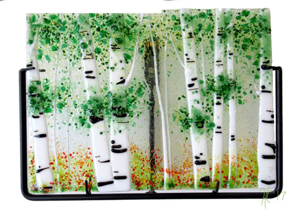 In this class, you will use mostly frits and powders and some cut glass pieces to make a beautiful birch tree landscape glass piece. The piece will be fired to leave texture and some dimensionto keep the detail. This is an all day